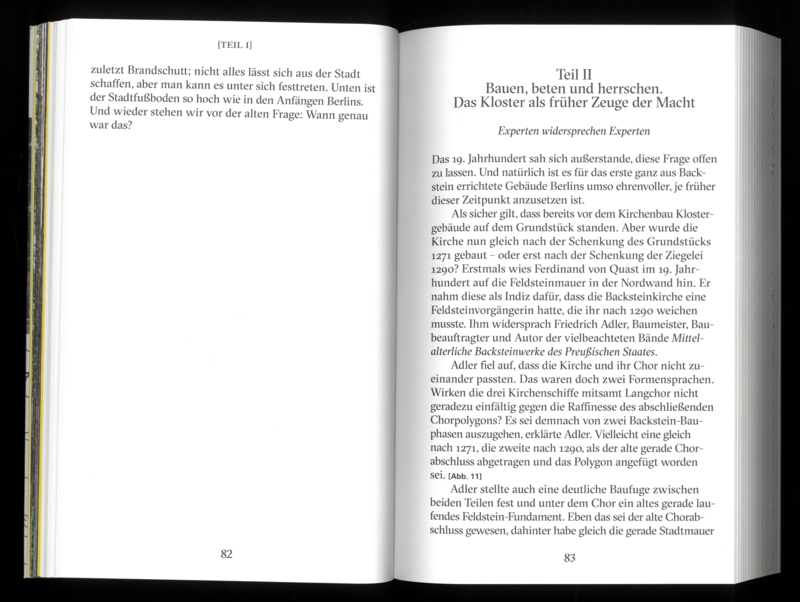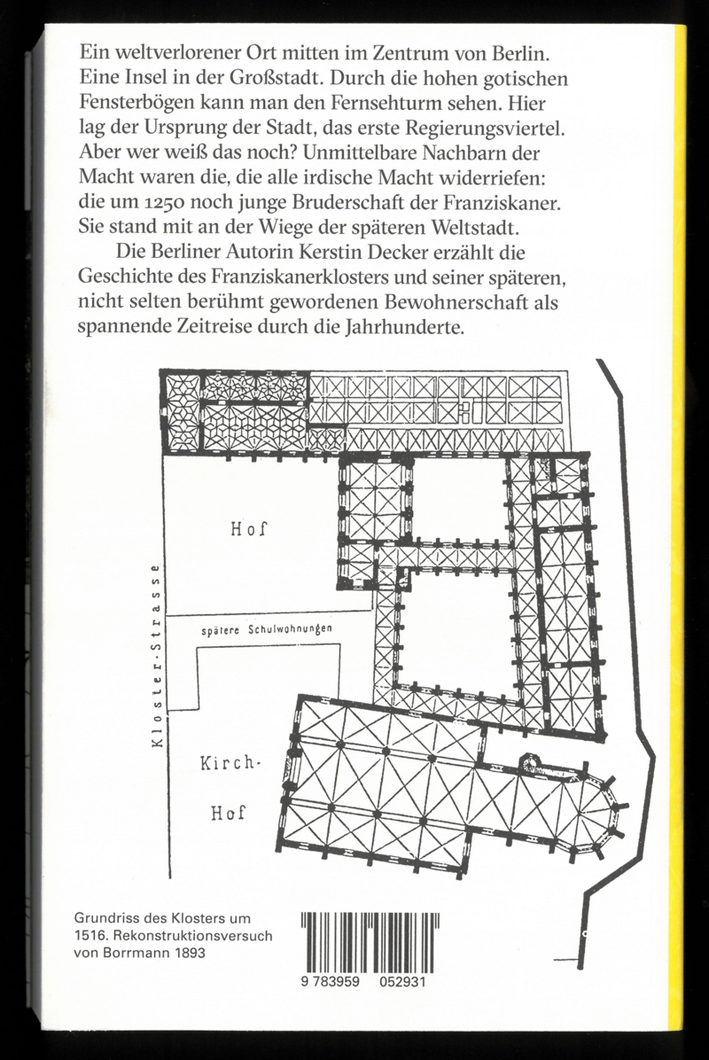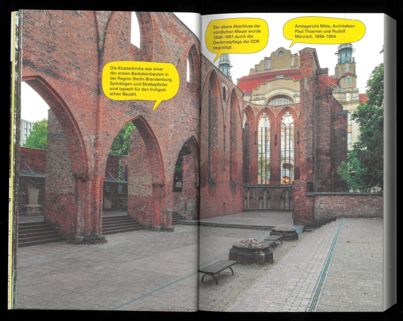 The ruins of the Franciscan monastery church are among Berlin's oldest architectural monuments. Kerstin Decker's cultural-historical narrative provides an insightful journey through time, describing the city's founding years and highlighting the groundbreaking architectural achievements of its builders as well as the many changes in the monastery church's users. Through maps, photographs, and drawings, the text introduces the history of the site and reveals different layers of time. The monastery church allows for a concrete experience of urban history in the city space, through which one can move with the book. The publication is developed in an interplay between the author, picture editors, and designers as a kind of archaeological method and formal experiment, so that a lively engagement with the city and its history emerges beyond the well-established routines of city guides.
