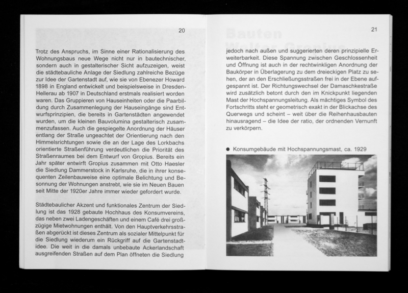 The Dessau-Törten estate served as a pilot project for industrialised housing between 1926 and 1928. The Bauhaus was confronted with the issue of providing cheap housing for large groups of people and arrived at different solutions. Walter Gropius pursued the garden city approach and constructed experimental terraced houses with elements of industrial prefabrication, Hannes Meyer and Richard Paulick developed modern high-rises with an urban flair, while Carl Fieger, Georg Muche and again Paulick proposed individual solitary buildings. On first glance, the estate might disappoint certain expectations of original Bauhaus architecture, but it can tell us more about modern housing than other estates of classic Modernism.