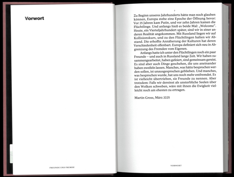 Martin Gross traces these shifts through his friendships with a Russian companion, Danil, and an Iraqi refugee, Sadi. Over time, the lines between them sharpen, cultural differences surfacing more clearly—especially in their attitudes toward women, but also toward violence, guilt, and the authority of the state.
