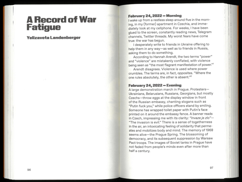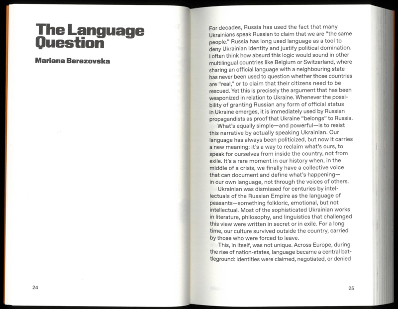 This anthology, edited by Max Eulitz, presents current positions of contemporary Ukrainian authors. Their narrative texts, essays, diary entries, and poems deal with faultlines in society and the psychological state of the present. The topics include the politics of language, the dreams of soldiers, wartime urban architecture, Western fatigue, shame, and radical gestures of care. The texts set out to make their reflections on current conditions a basis for discussing a future postwar society.