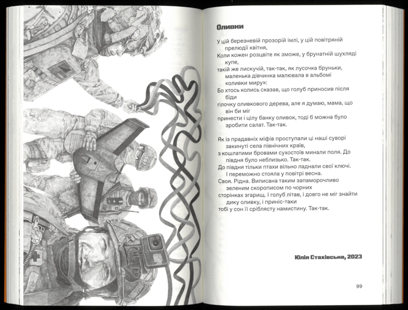 The book is complemented by two image sequences with drawings by Davyd Chychkan and Marharyta Polovinko, both of whom were killed in action on the front lines this year.