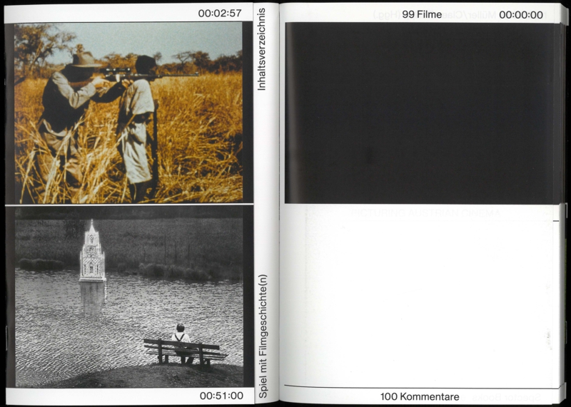 A book of texts and images that plays with history, stories and what it might mean to stop (cinematic) time: 99 individual frames from 99 works by 99 Austrian filmmakers since 1945, each described by 100 international writers and journalists from the fields of criticism, film theory, and science.