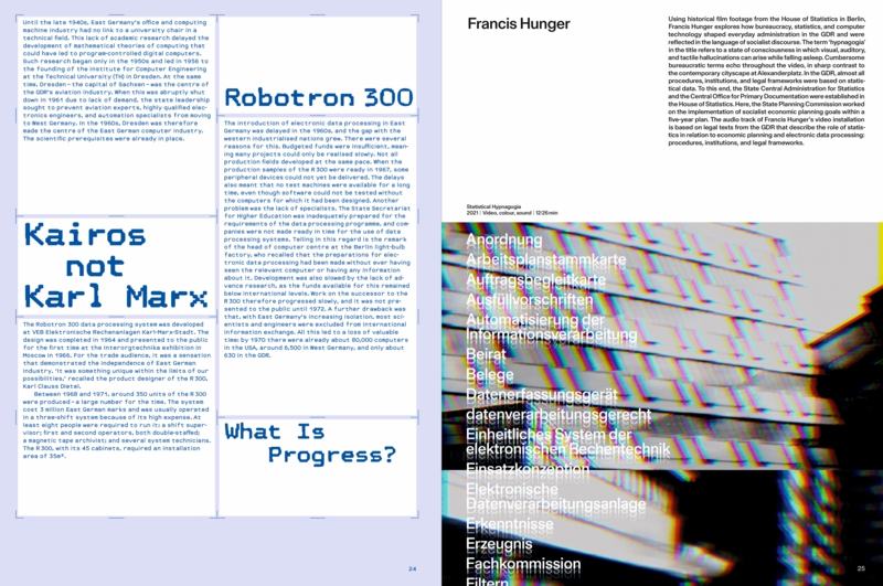 Through a montage of conversations, documents, artistic works, and reflections on the relationship between geopolitics, the planned economy, and the global market, the book examines the industrial development of the East German state. In doing so, it challenges conventional notions that have become entrenched in narratives of a “socialist” past and sheds light on the political and economic contradictions that ultimately led to the collapse of the GDR.