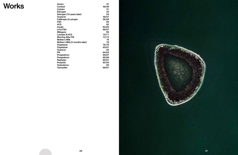 This book explores the human body—from hormonal and photographic perspectives—as both a political instrument and a site of knowledge production. Labor Lab is an experimental photo series in which liquid hormonal substances are applied directly to exposed photographic negatives, triggering chemical reactions within the photo emulsion that are later developed into large-format prints in the darkroom. Through this photochemical “hack,” the series produces portraits of hormones—the substances that underpin connection, reproduction, sex, sleep, hunger, ageing, growth, contraception, and abortion. The photographs transform these intimate bodily experiences into an aesthetically tangible and accessible form, opening them up to interpretation and debate.