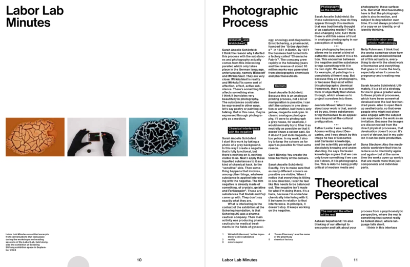 The volume includes four essays by contributors who took part in the interdisciplinary discussions that preceded and accompanied the first exhibition of Labor Lab at the Schering Stiftung in 2024.