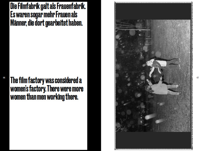 The first multilayer colour film was developed in 1936 at the Agfa Filmfabrik Wolfen; the factory, now operating as ORWO Filmfabrik (ORiginal WOlfen), became the most important producer of colour film in East Germany. Today, all that is left at the site is the small company Filmotec, which produces a special archival film with long-term stability that can be inscribed with digital data in the form of QR codes. The photo book Wolfen is made up of a mix of different layers: photographs taken by Tobias Zielony in Wolfen-Bitterfeld; the storing of these images in Filmotec’s archive film format; and a text that switches between essay and science fiction in a bid to express an untold story, a story of darkness and cold, of dwindling work in the film factory, most of which was carried out by women — or by forced labourers in the period up to 1945. In the era of analogue film, photographic processing had to be done in the dark: Zielony’s work tackles this idea on a biographical, physical, and historical level