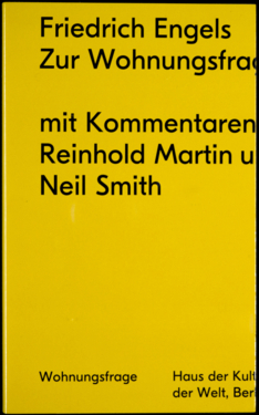 In a series of three essays published by Friedrich Engels in 1872 in the Leipzig newspaper Der Volksstaat, the author analyses the structural conditions surrounding housing shortages in capitalism and delivers a polemic against the reformist ideas of middle-class socialists and the bourgeoisie. He rejected a pre-revolutionary approach to improving living conditions. The housing question could not, in his view, be resolved with architectural ideas or urban-planning concepts but required the overthrow of social relations.
