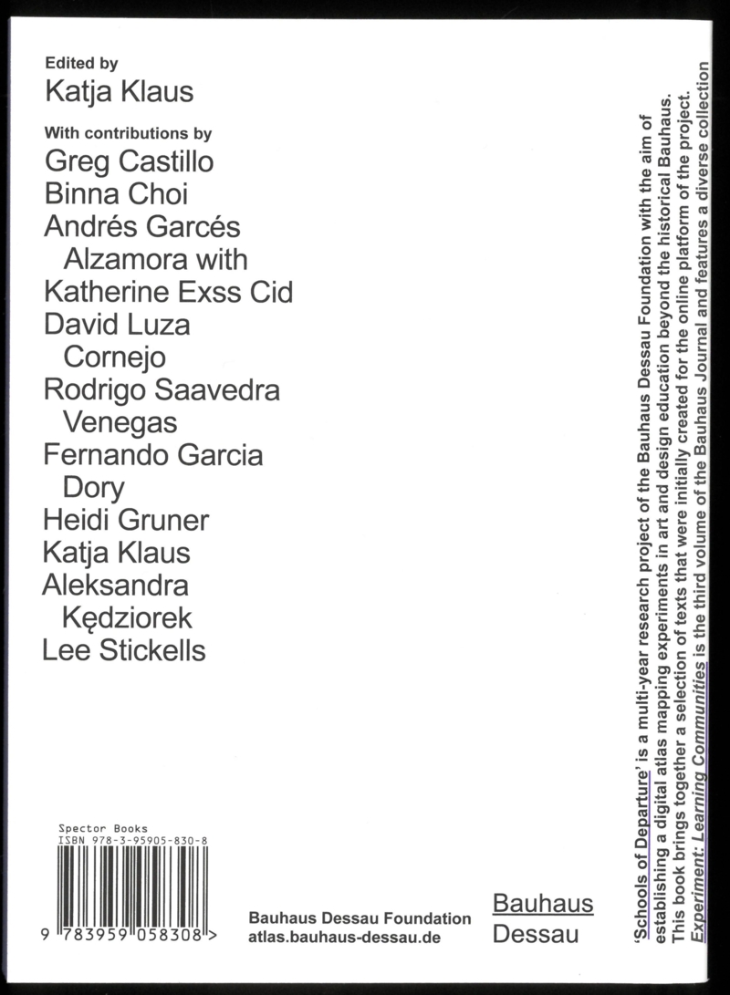 Die dritte Ausgabe des Bauhaus-Journal „Schools of Departure“ trägt den Titel „Experiment: Learning Communities“ und beschäftigt sich in einer Reihe von Beiträgen mit zeitgenössischen und historischen Lerngemeinschaften. All diese Gemeinschaften haben – auf je eigene Weise – dazu beigetragen, dass in Kunst, Architektur und Gestaltung alternative Lernumgebungen entstanden sind. Katja Klaus von der Stiftung Bauhaus Dessau hat die Beiträger·innen der dritten Ausgabe eingeladen, der Frage nachzugehen, wie pädagogische Reformversuche die Vorstellungen von Ausbildung und Gemeinschaft geprägt haben. Einige dieser Versuche werden bis in die Gegenwart durch unterschiedliche pädagogische Ansätze und an verschiedenen Schulen weiterentwickelt. Die Beiträge untersuchen, wie Lehrende und Lernende gemeinsam ihre Umgebung formen, Wissen nachbarschaftlich teilen und neue, experimentelle Formen proben, Gesellschaft zu gestalten, gemeinsam zu lernen und zu leben.